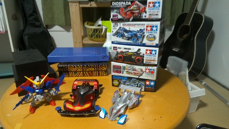 ↑ 作ってないキットと最近作ったデスティニーガンダム。未塗装なので塗装したい。サイクロンマグナムも塗装途中で放置してある。